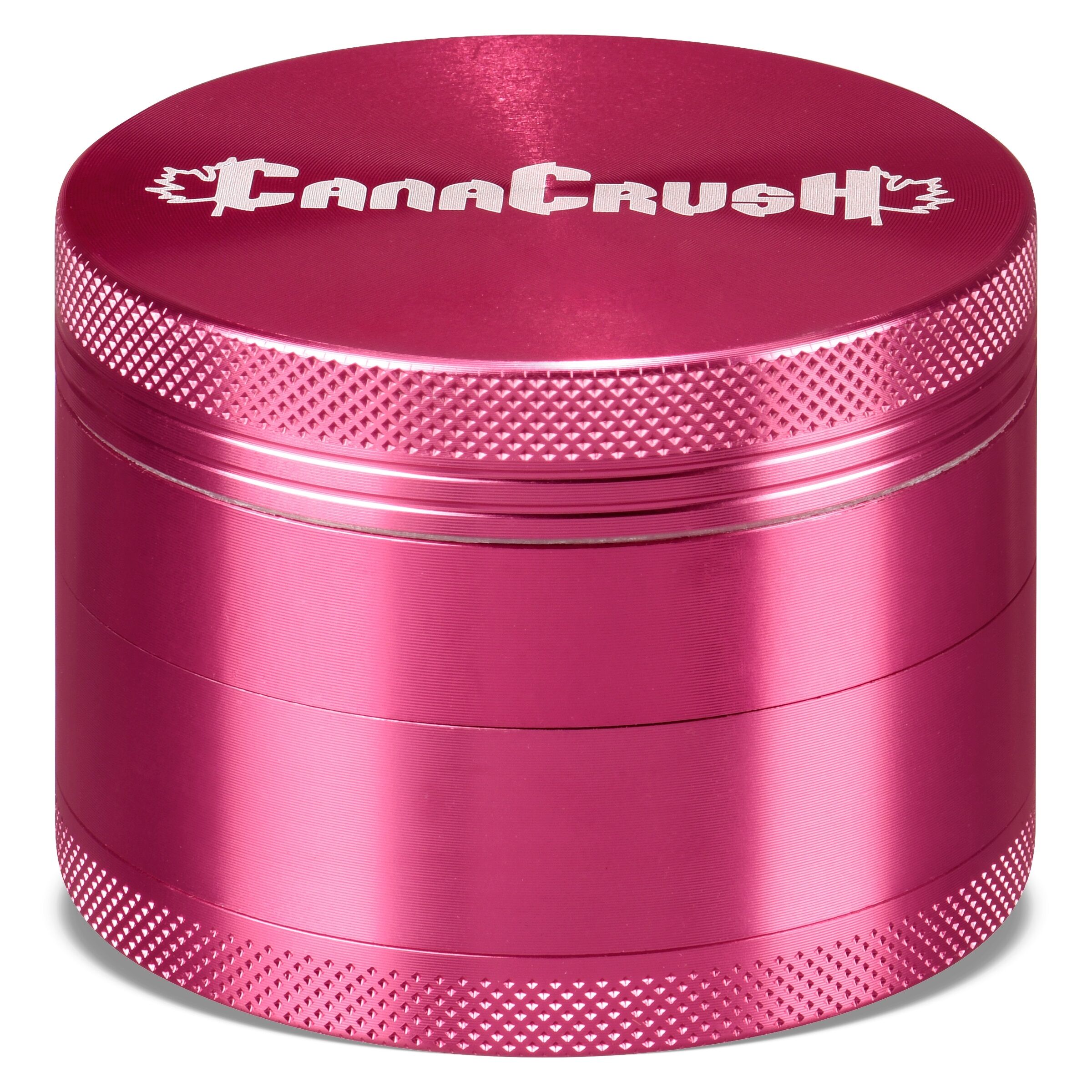 CannaCrush's four-piece 2.5" grinder features 50 specially designed aluminum diamond-cut teeth and 30 grinding holes (made from aircraft-grade anodized aluminum on CNC machines) that are scratch resistant, which prevents flaking or pealing. Its knurled grip makes grinding easier, and the lid stays in place with a neodymium magnet that also keeps the odour locked inside and maintains freshness. The chamber contains an advanced micron mesh screen to filter the kief. Every CannaCrush premium grinder is equipped with a kief scraper, and a lifetime warranty. This grinder is available in black or grey.