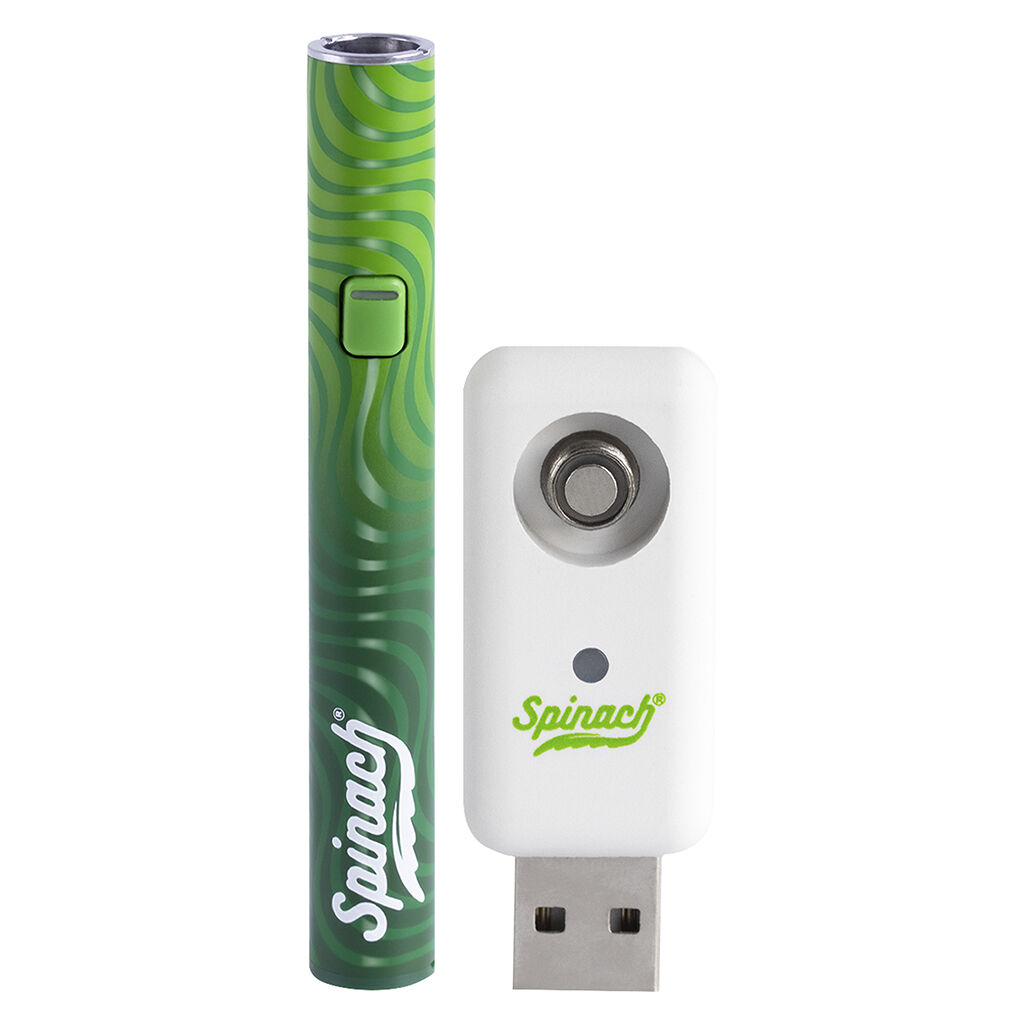 For use with 510 cartridges, the Spinach 510 thread battery comes with a USB charger.