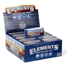 Elements Wide Rolling Tips are an important part of rolling your own cigarette. These come with 50 tips per pack. These tips prevent having a soggy, wet tip at the end of your roll and can even save some of your product from being wasted or ending up in your mouth! While these tips are great for your roll it is important to know they are not filters and will not filter anything out while smoking. These tips will fit at the end of any roll and are a must-have for every user! 50 tips per pack Elements are made from natural earth-friendly materials like rice and sugar without the use of harsh chemicals or burn agents. They burn with virtually zero ash except for the natural sugar gum turning into caramel as it burns. Each sheet is watermarked with the proprietary criss-cross watermark that helps prevent runs and allows for the smoothest and most even burn possible. Hold a sheet of Elements up to the light and you will see its beautiful watermark printed on the paper. Elements rolling papers are 100% windmill powered. Our production for these beautiful papers takes place in a small town called Alcoy, in the mountains north of Alicante Spain. Alcoy is known as the birthplace of rolling papers (circa 1700). Elements tips are distinctive for their proprietary watermark!